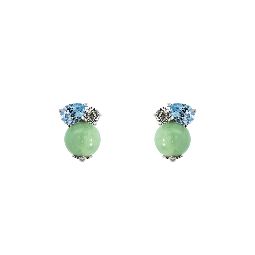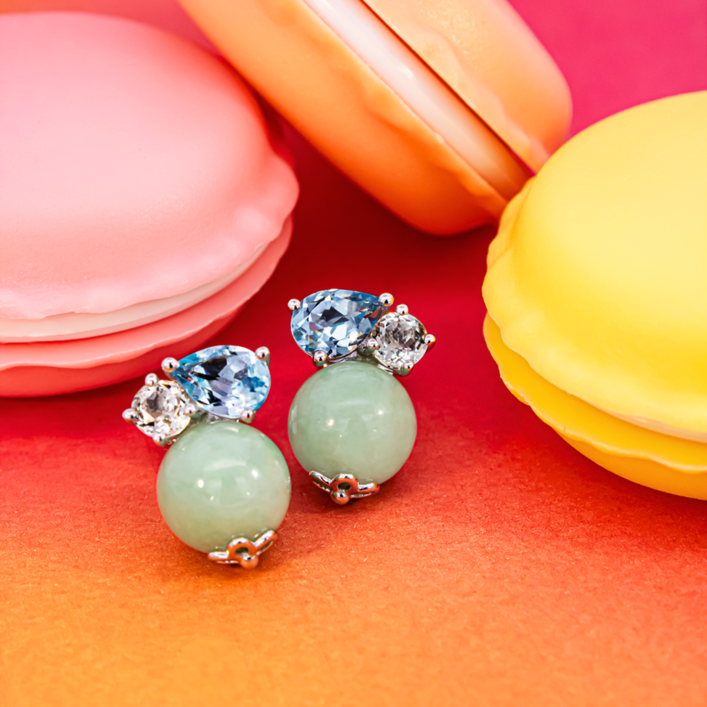 An elegant harmony of colors and craftsmanship, this pair features luminous jade studs adorned with gemstones. Each stone is thoughtfully placed to bring balance and brilliance, offering a modern yet timeless design.